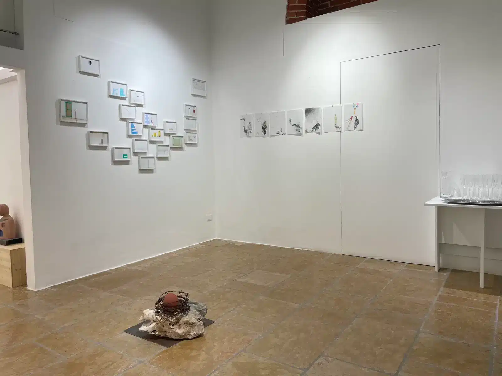 Taken as a single, inviting and captivating environment, the gallery space metaphorically becomes the notebook ready to be marked with the script of art. and specifically in this instance, with sculpture, installation, photography and charcoal drawings, to give rise to a literary exercise that spills over the margins of the page to become a habitat perpetuum mobile able to incorporate not just the material but also the spectator who becomes a privileged player and essential, interactive part of the entire spectacle.